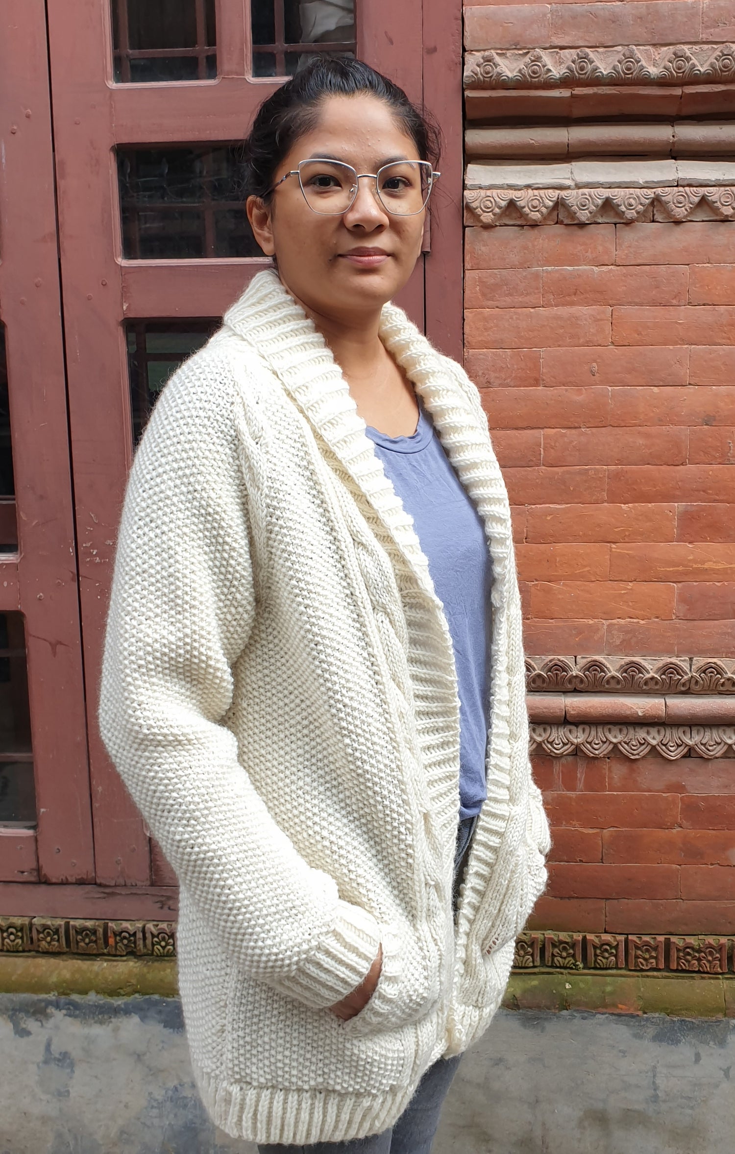 Lämmin villapaita on neulottu käsin Nepalissa. Klassinen luonnonvalkoinen väri sopii upeasti kaikkien värien kanssa. Neulotut resorit hihansuissa ja helmassa. Yhdistä farkkujen tai upean hameen kanssa ja saat täydellisen asun syksyyn ja talveen.
